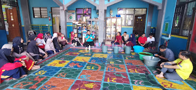 masing-masing kelompok bertugas menyatukan supersoft dengan air hangat di dalam